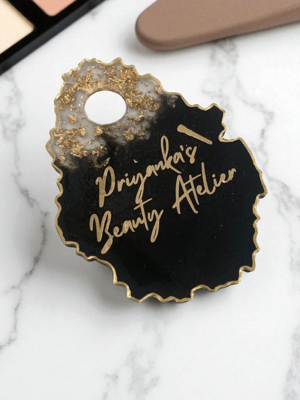 Available in a variety of colors and effects—marble swirls, gold flakes, florals, glitter, and more—each piece is one of a kind. Optional Thumb Hole: Ergonomic grip for ease of use while working. Every resin makeup palette ensures a one-of-a-kind product that fits your personal style and needs.