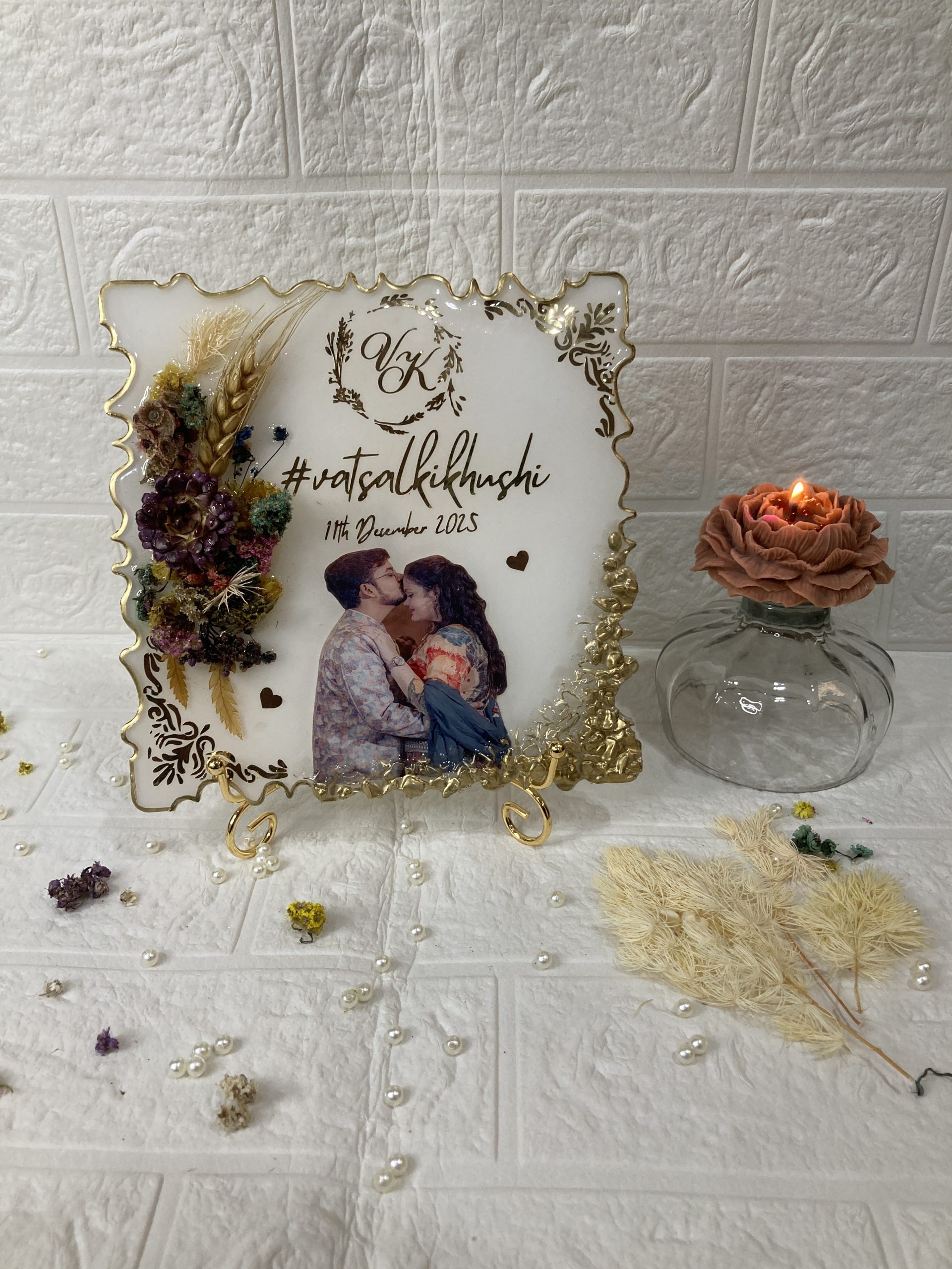 - Resin Couple Frame: A unique keepsake for your favourite photo. Our Resin Couple Frame blends modern design with handcrafted charm, creating a stunning display piece that highlights the love you share.