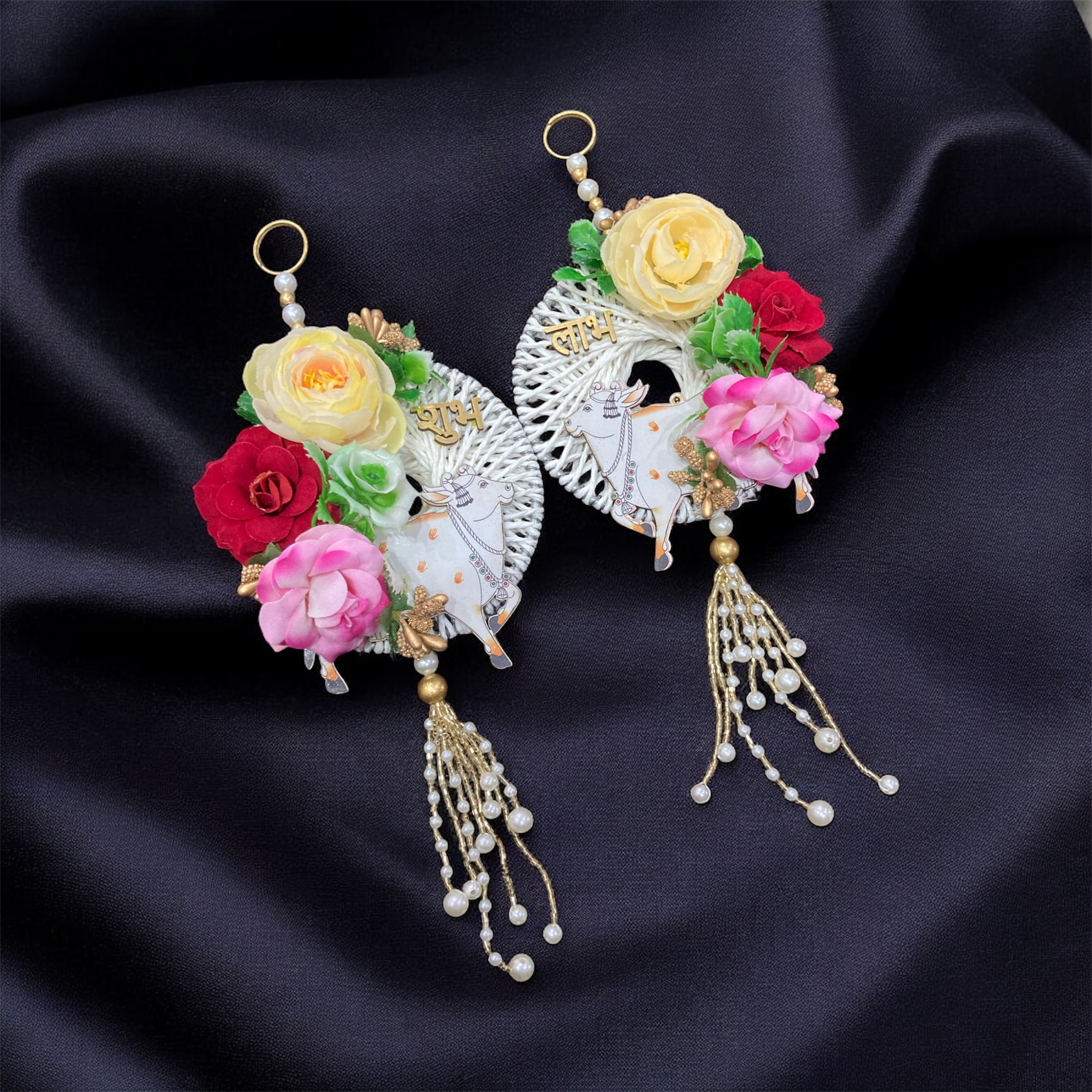 - Shubh Labh – Welcome positivity and prosperity into your home with our beautifully handcrafted Shubh Labh Hangings. Symbolizing “Shubh” (Auspiciousness) and “Labh” (Prosperity), these elegant décor pieces are perfect for adorning your entrance, mandir, or living space.